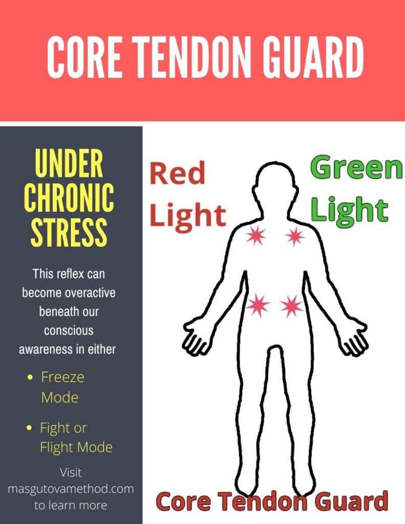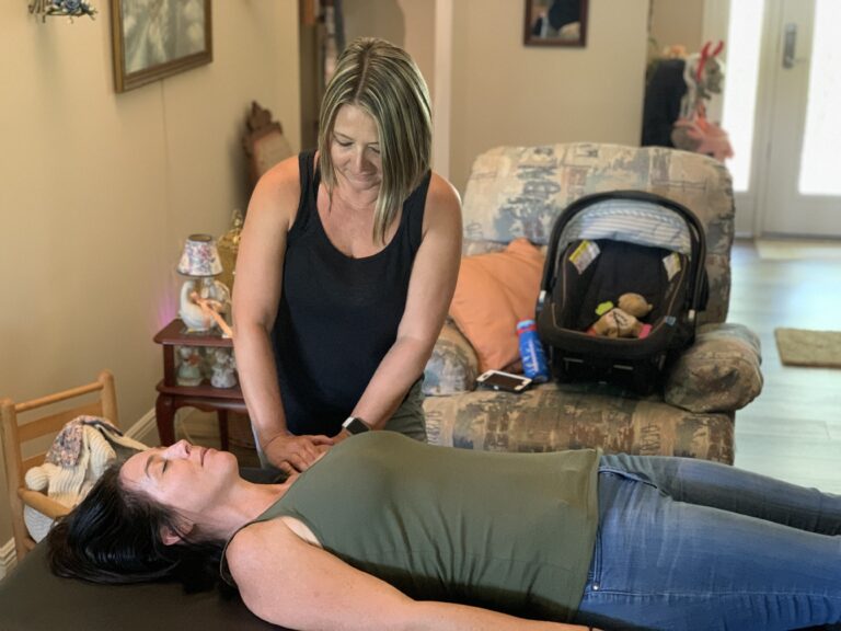 Client is lying fully clothed on a massage table. The session begins with guided meditation paired with physical touch targeting areas of tension from overactive fight/flight/freeze muscle protection.